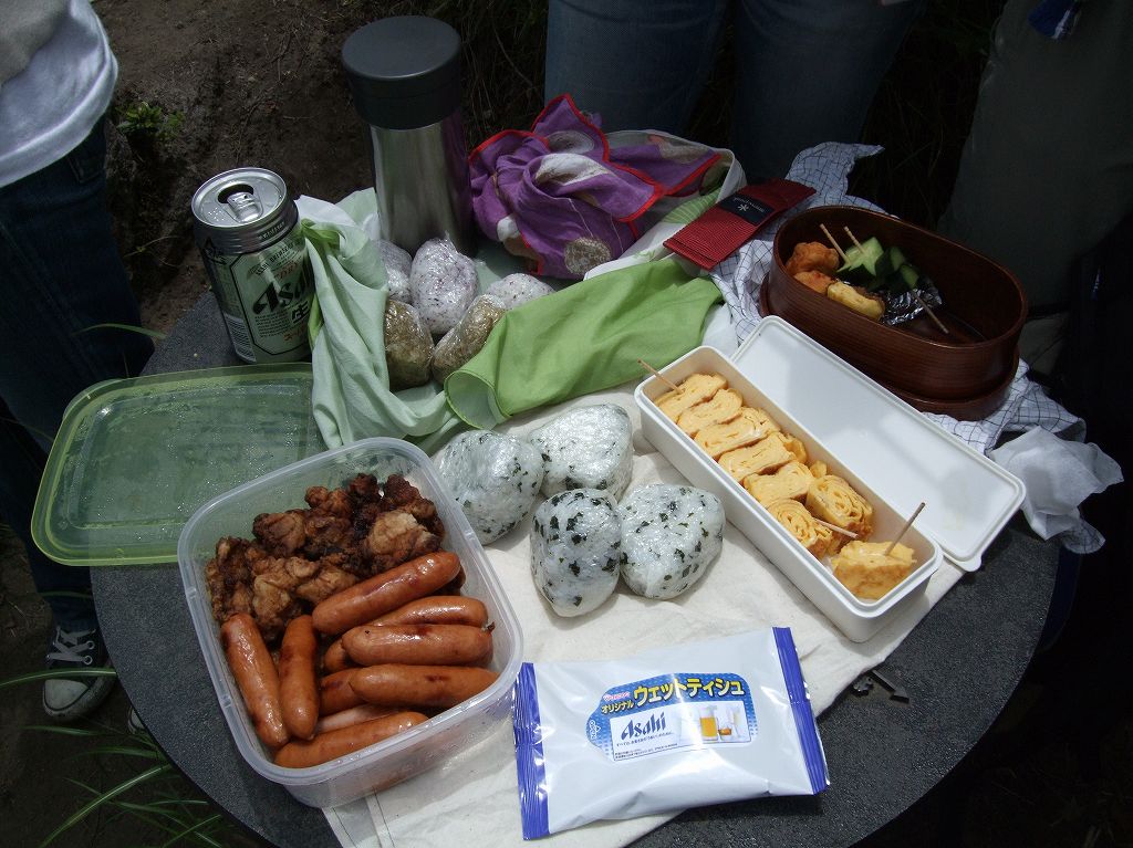 頂上で昼飯(ビール最高!)