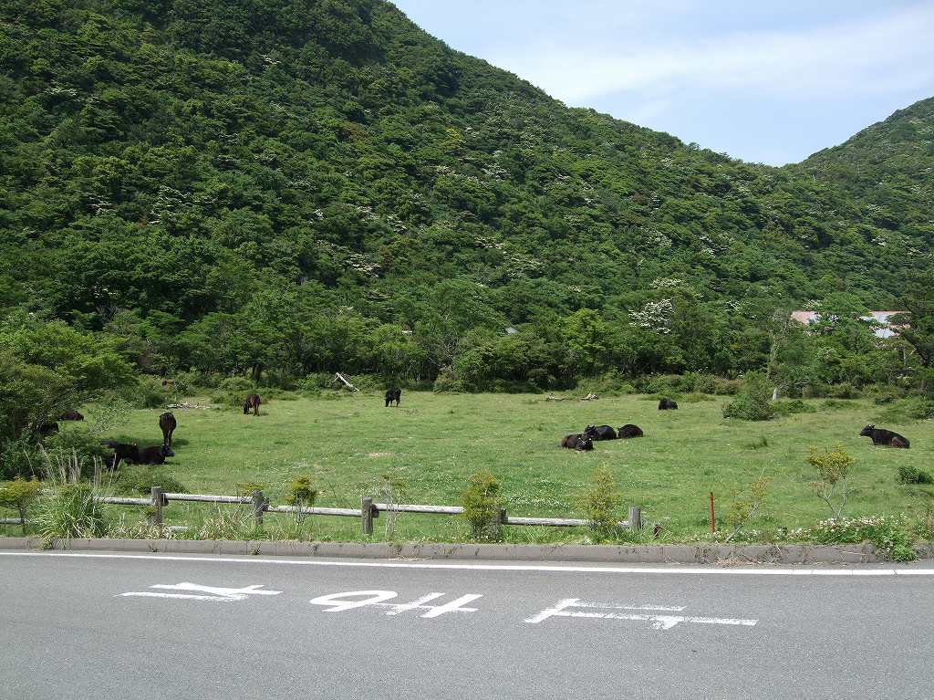 駐車場の脇で牛がお出迎え