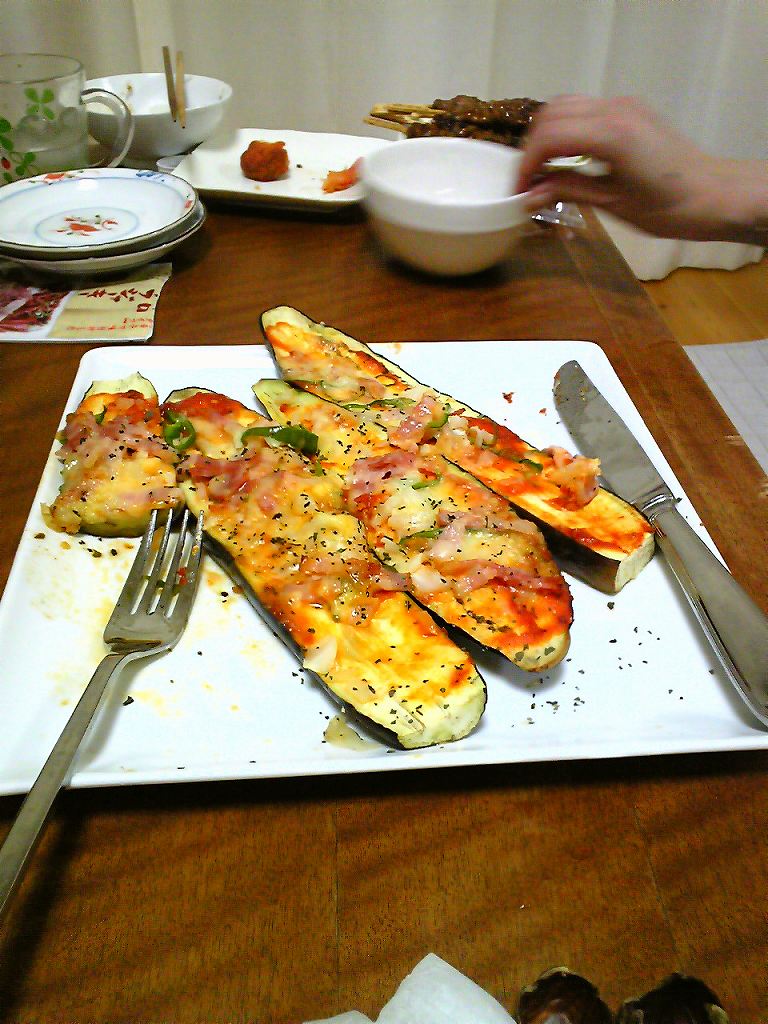 ナスビがピザ風に!(やるなヘイゾウ!やらんな嫁!)
