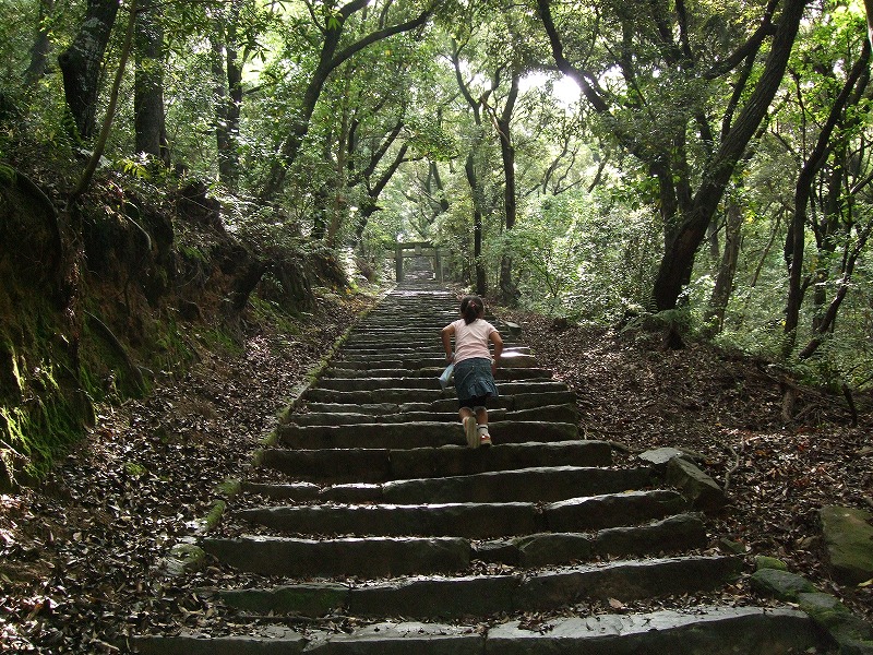 こんな状況ですが昨日は土日と連休でした。最近体がなまってメタボ化が激しいので小学生の子供2人連れて上山公園の展望台まで山登りに行くことにしました。駐車場に車を止めて展望台に登る前に自分が高校時代走っていた愛宕神社の階段を目指すことにしました。