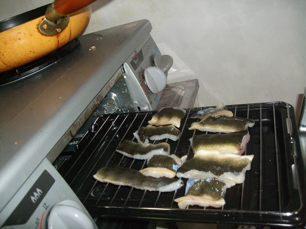 蒲焼にはチョット難しいサイズですがヒット!それもうちのチビ助が!