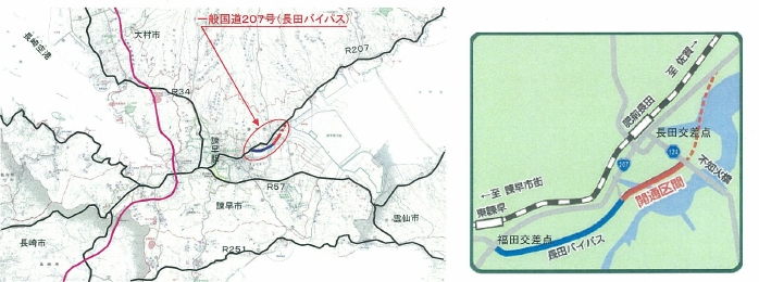 今度工事する栄田町の現場へ諫早市役所と元請の担当者と朝から立会した後、会社へ帰る途中早速通ってみました。