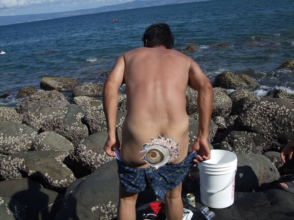 一人の親父が人があまりいないからと言って岩場の上で堂々と着替え済ませ集合場所へ戻る事に。