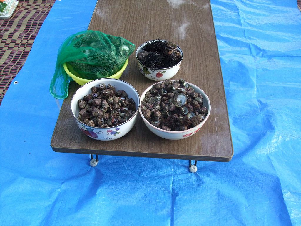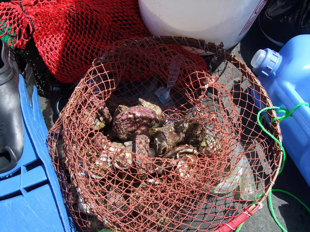 「みな」これがメイン。 「あわび」人数ぶんは調達。 「さざえ」・・3,4個。 そして「たこ×2」調達。