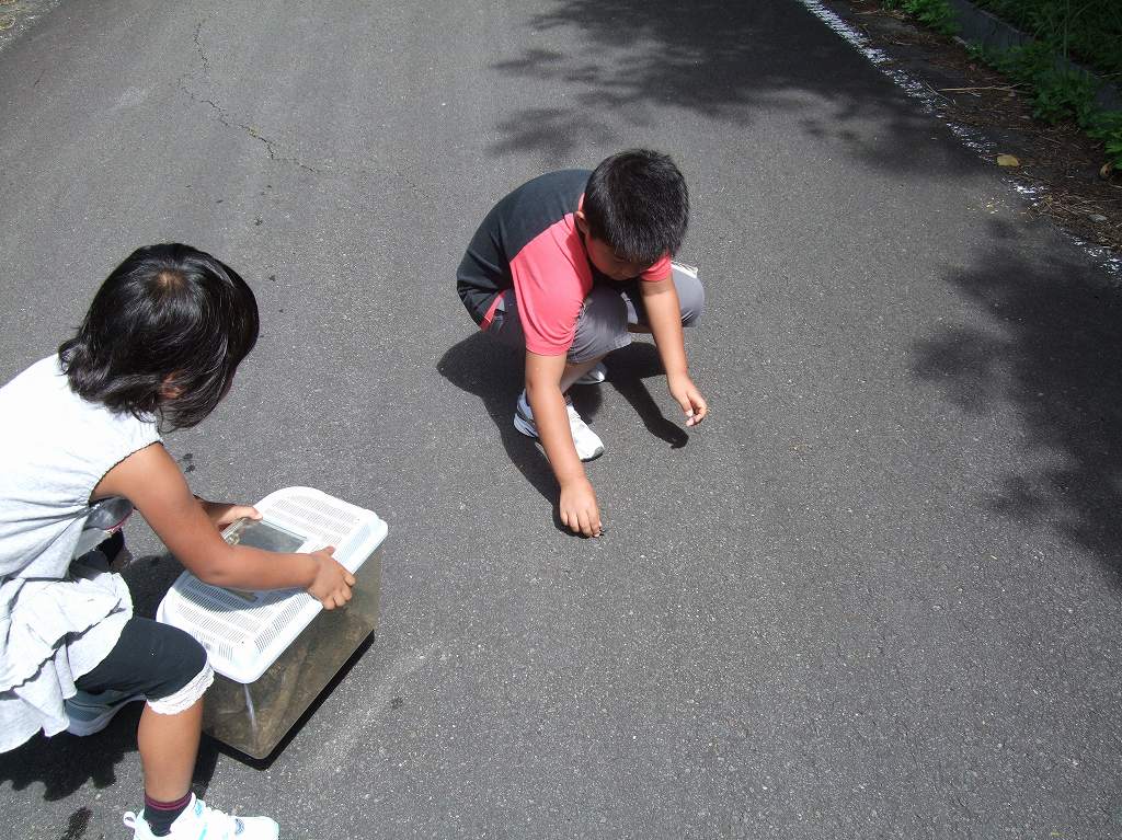 目的の「かぶと虫」・・・のメスのみ!結局合計4匹で次の「メダカ捕り」へ