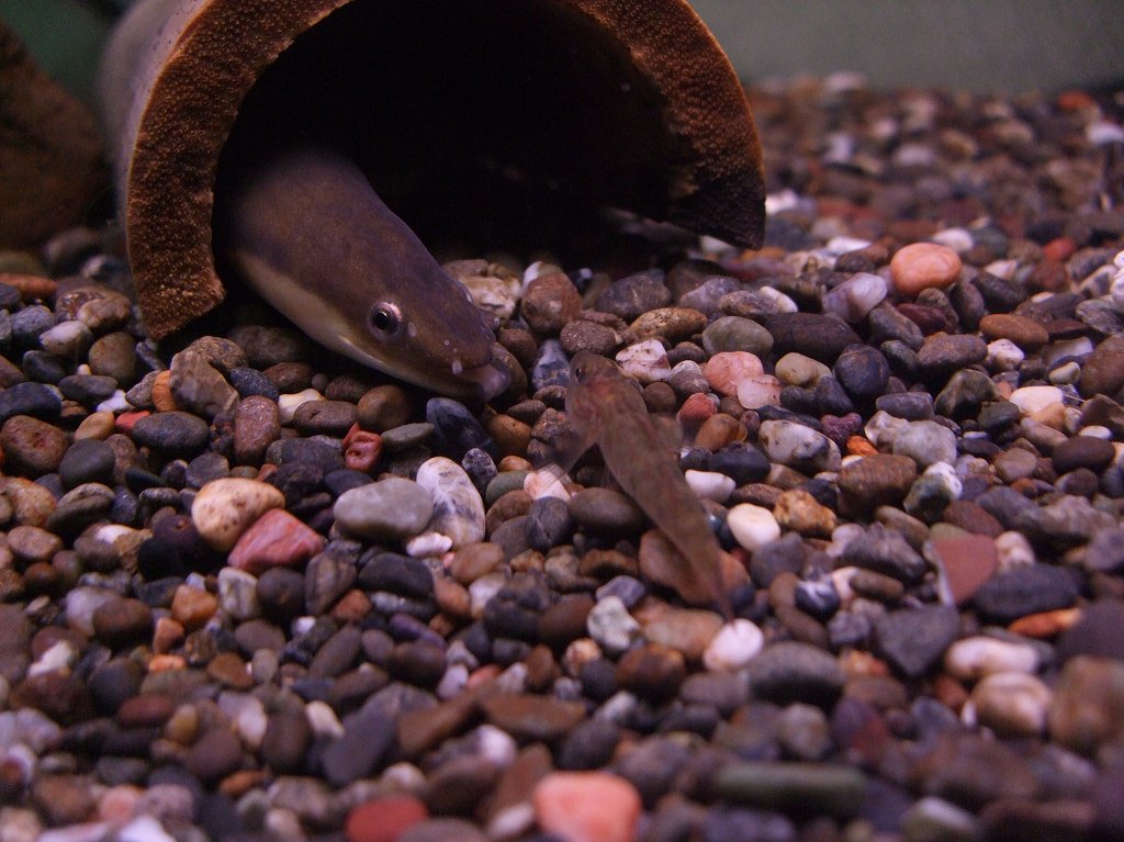 「ヨシノボリを狙うウナギ」