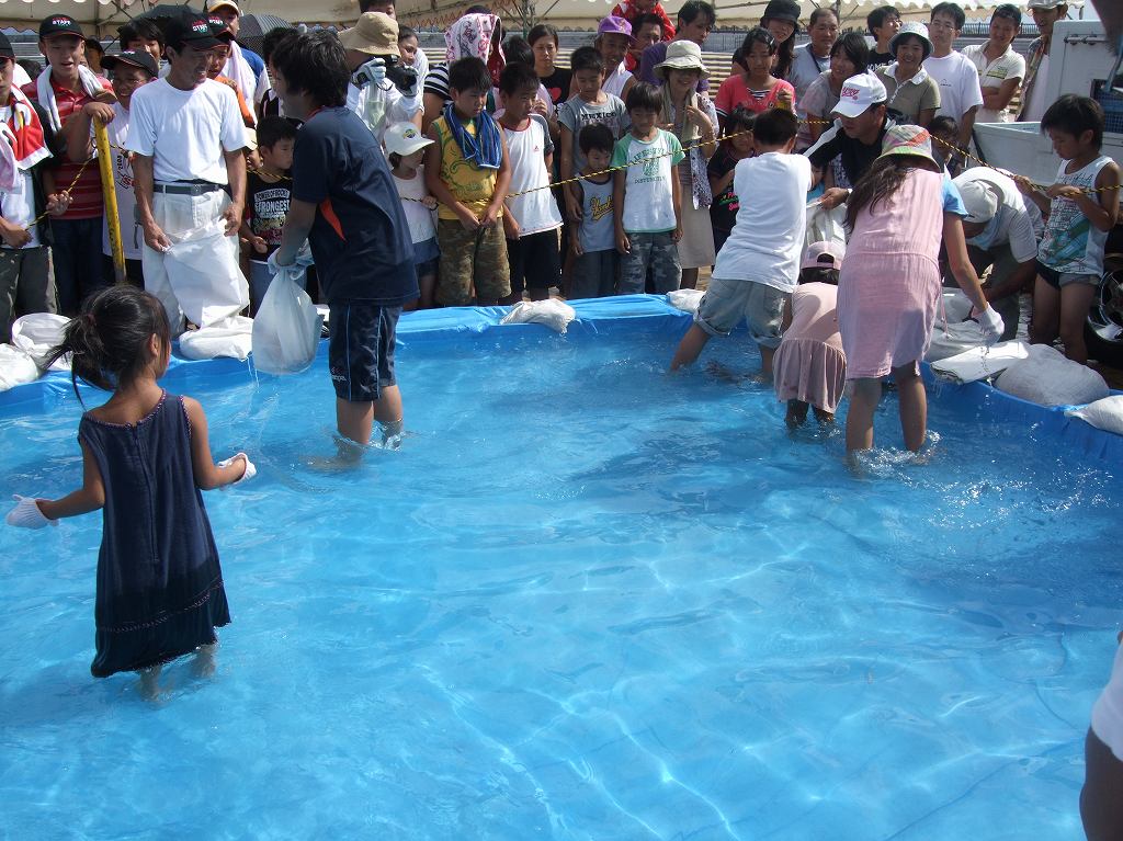 目的は「魚のつかみ取り」、「ラムネ早飲み競争」、「もち拾い」。そして花火大会!