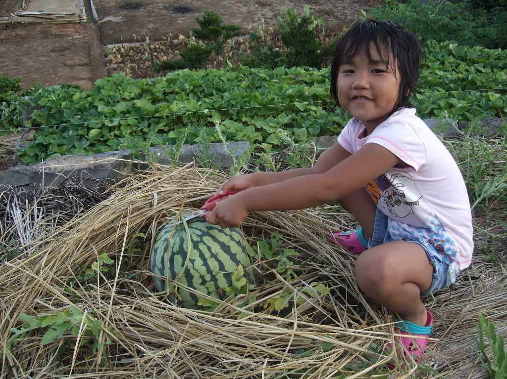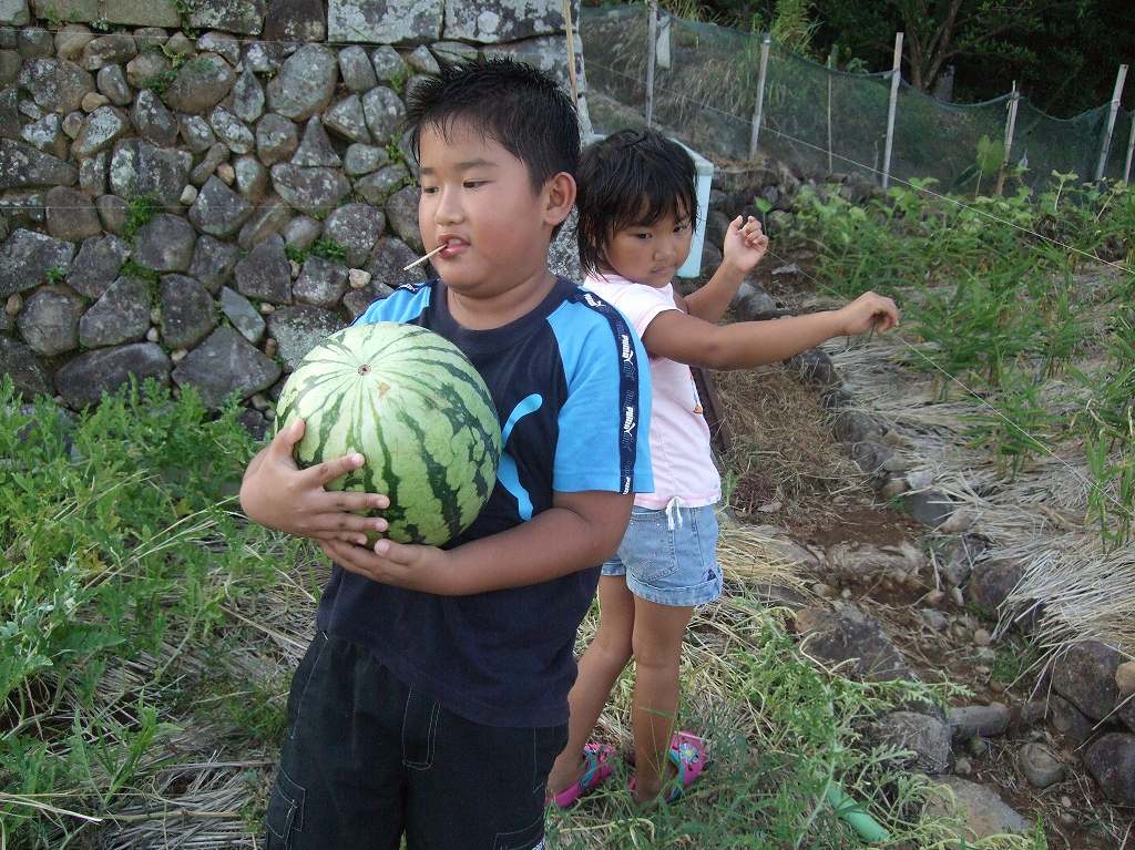 裏の畑の「西瓜(スイカ)」を持って帰れ!とじいちゃんに言われ「スイカ取り」!