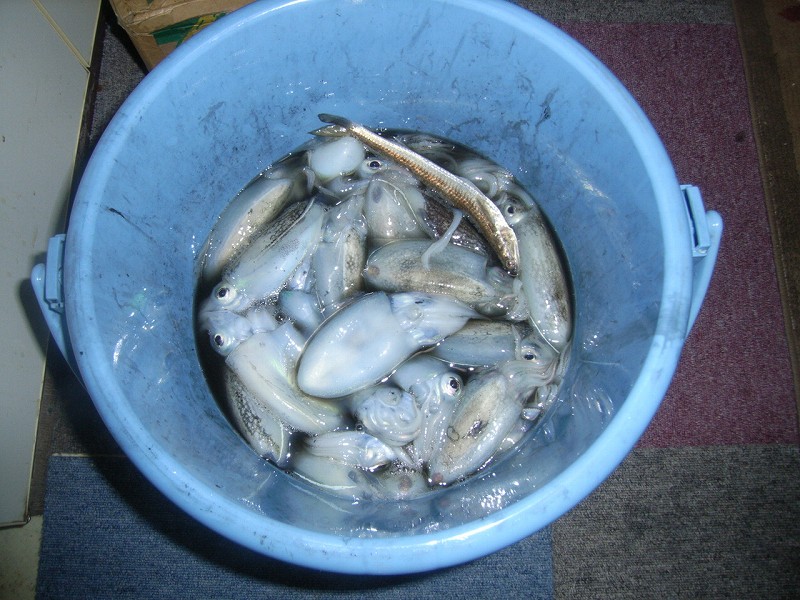 なんとかバケツ半分の釣果!(なぜかエソまで)
