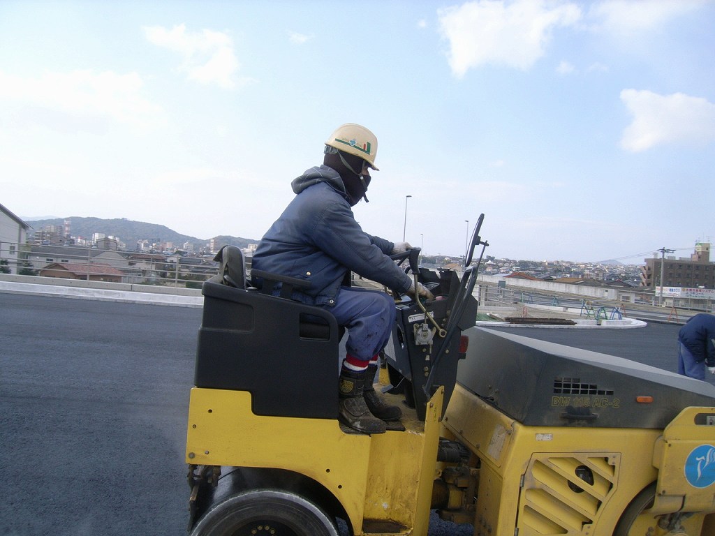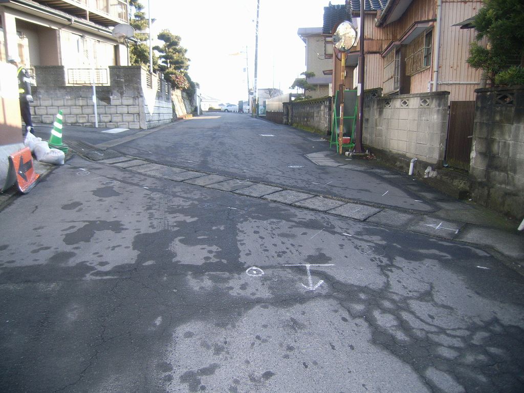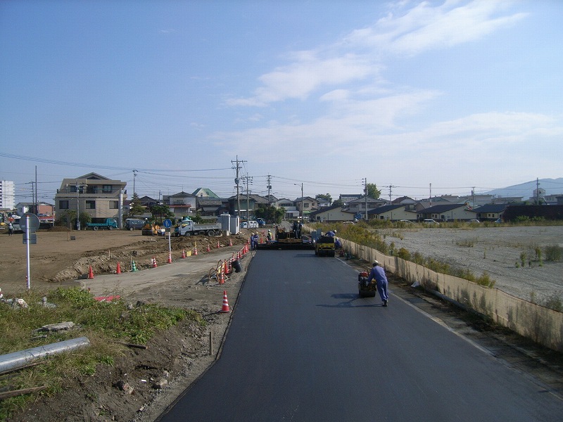 すでに車道は基層まで、歩道は路盤まで土木工事で終わってからの発注です。