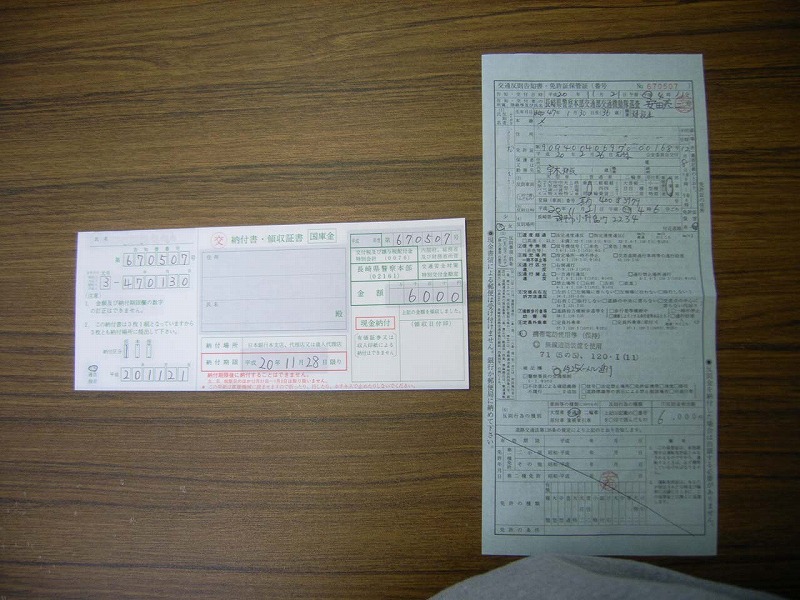 1点減点、6000円の罰金!