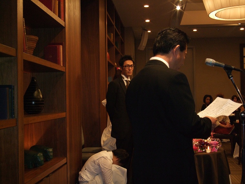 仲人はなく、長い祝辞もなく、乾杯はまだかなぁとも