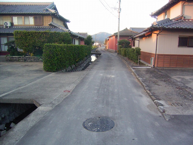 T字の交差点、市営住宅の入口あり、道路幅5.0m・・・