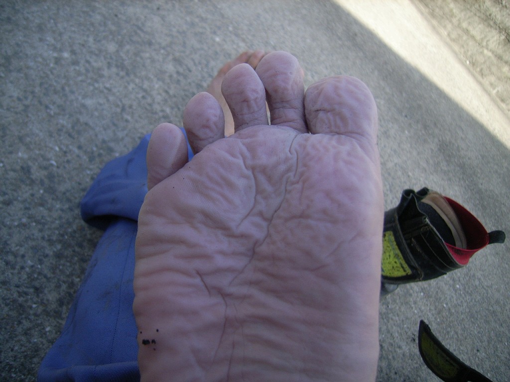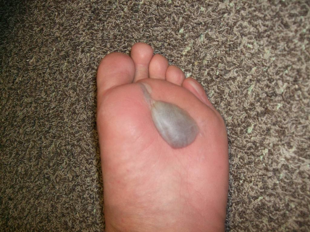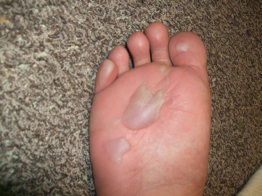 とりあえず、足の裏の水ぶくれの皮に穴をあけてみよう・・・(涙)